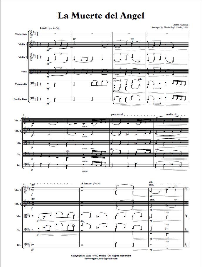 Piazzolla: La Muerte del Angel for String Orchestra (Full Score and Orchestral Parts).